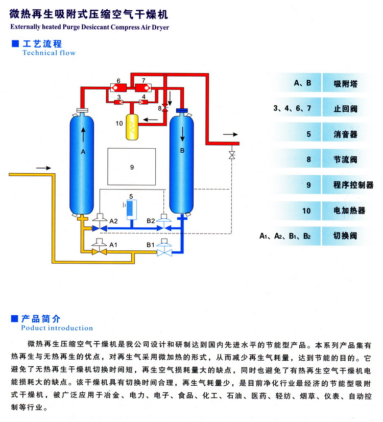 2) 采用變壓吸附的工作原理循環周期可根據工況進行編程,出廠標準設置10min。可根據客戶需求合理選配多種控制模式,如:PLC控制、遠程監控、露點顯示及信號傳輸功能。
