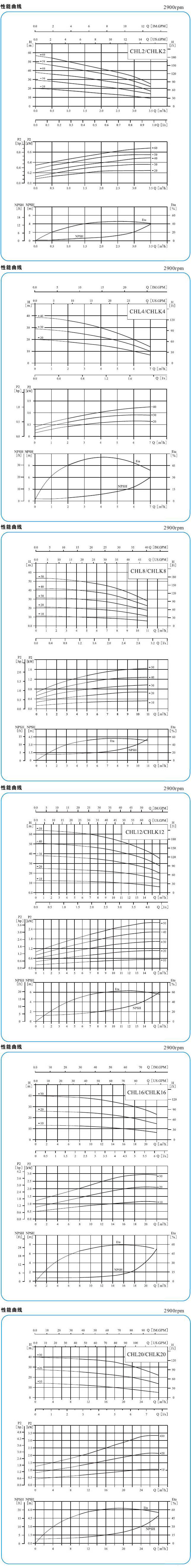 【CHL型不銹鋼輕型多級離心泵】性能曲線圖譜: