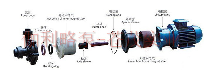 【CQF型工程塑料磁力驅動泵】結構爆炸圖: