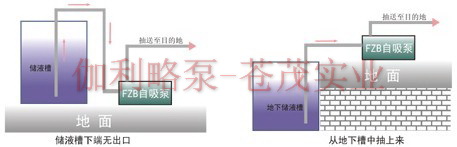 FZB型氟塑料自吸泵的過流部件全部采用氟塑料制造,且又具有自吸功能,因此,FZB自吸泵的用途極為廣泛,如:將地下槽中的腐蝕性液體抽送至目標地點,將底端無出口的酸堿槽中的酸堿抽送到目標地點,或用于多個酸槽之間的循環,或用于卸酸等等。