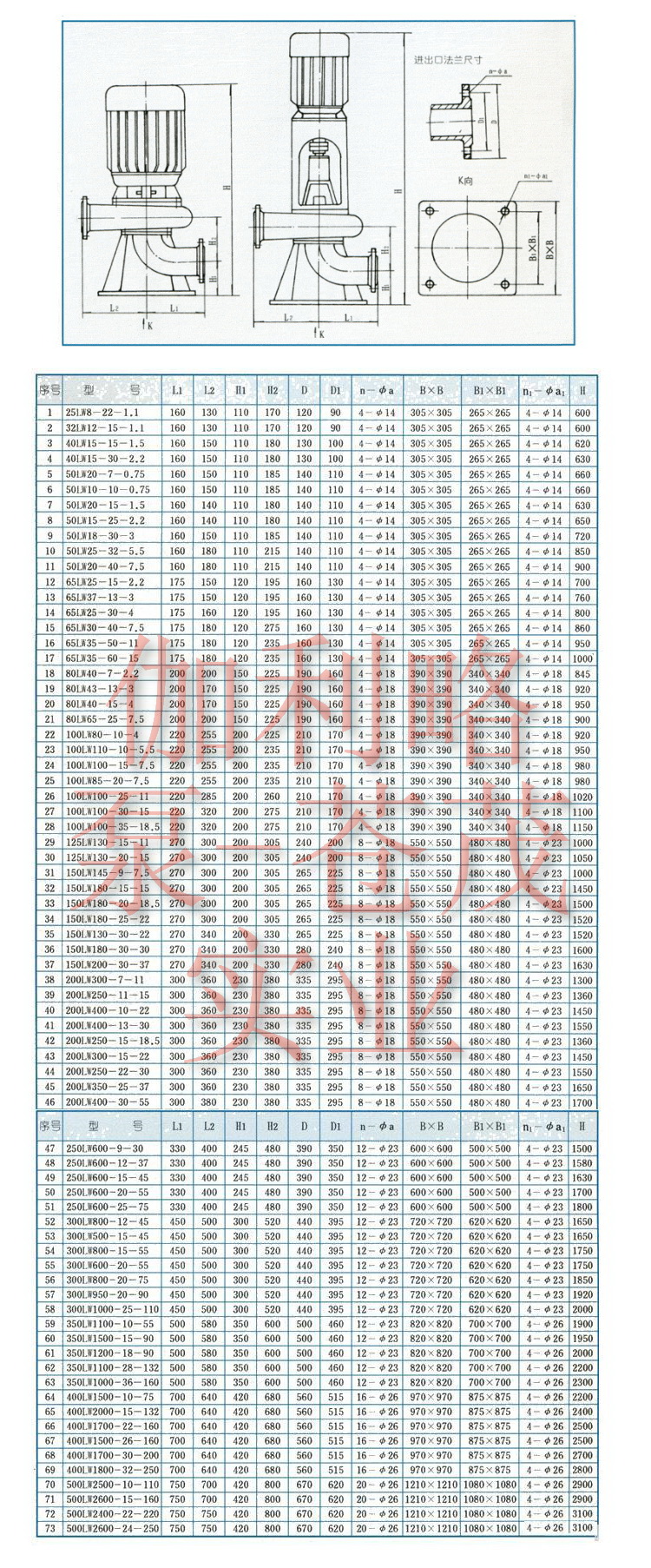 【LW型立式無(wú)堵塞排污泵】安裝尺寸圖:?