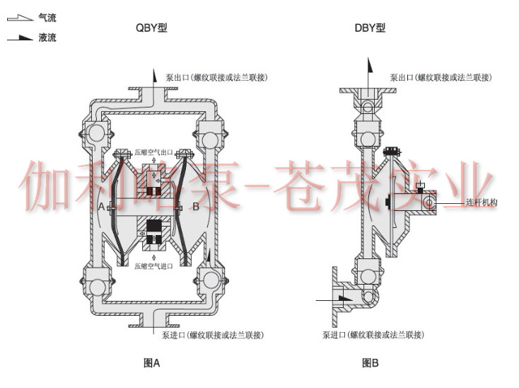 QBY系列工程塑料氣動隔膜泵是一種新型輸送機械,是目前國內最新穎的一種泵類。采用壓縮空氣為動力源,對于各種腐蝕性液體,帶顆粒的液體,高粘度、易揮發、易燃、劇毒的液體,均能予以抽光吸盡。其性能參數與聯邦德國的WLLDENPVMPS、美國的MARIOWPUMPS相近。 伽利略Galileo泵業目前已形成系列化生產,共有八種規格直徑:φ10mm(3/8’)、φ15mm(1/2’)、φ25mm(1’)、φ40mm(11/2’)、φ50mm(2’)、φ65mm(21/2’)、φ80mm(3’)、φ100mm(4’)。五種材質:鋁合金、鑄鐵、不銹鋼、工程塑料、襯氟塑料。隔膜泵根據不同液體介質分別采用丁晴橡膠、氯丁橡膠、氟橡膠、聚四氟乙烯隔膜。以滿足不同用戶的需要。 該泵自1986年投產以來,已被國內一千多家石油、化工、電子、陶瓷、紡織系統單位采用,安置在各種特殊場合,用來抽送種常規泵不能抽吸的介質,均取得了滿意的效果。
