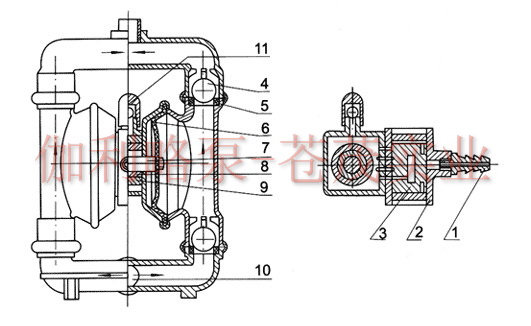 【QBY型鑄鐵氣動隔膜泵】產品結構圖:
