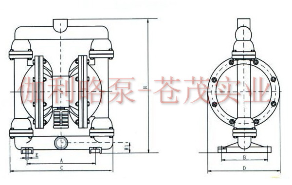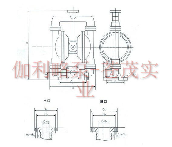 【QBY型鑄鐵氣動隔膜泵】安裝尺寸圖:?