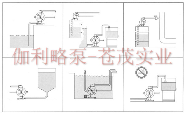 2、臨時倒罐、裝卸車和油品采樣,煉油生產(chǎn)調(diào)度過程中,油品經(jīng)常要臨時倒罐、裝車和對油罐中油品采樣檢驗。或者為了不至于污染正常的管線時,用隔膜泵接臨時管線可以迅速方便地完成此項任務。